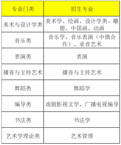 备注:美术学、音乐学、表演、舞蹈学、书法学等专业为师范类专业。艺术管理专业依据高考文化分数,参照普通类专业录取。