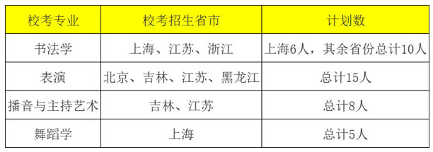 备注:1. 2022年艺术类校考采用线上考核的方式。校考专业考核时间、方式、科目等具体信息,最终以学校招办公布的《2022年上海师范大学艺术类专业校考实施办法》为准(1月初公布)。