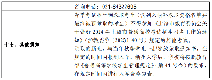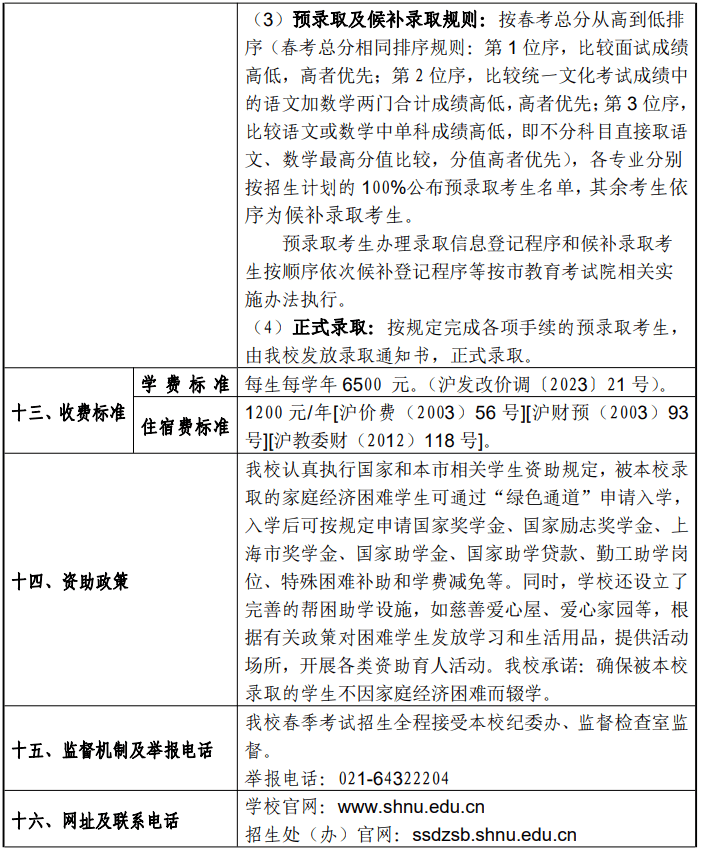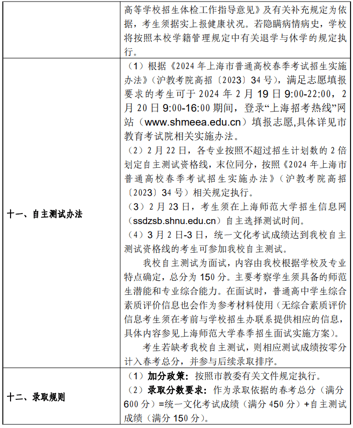 上海师范大学2024年春季高考招生章程